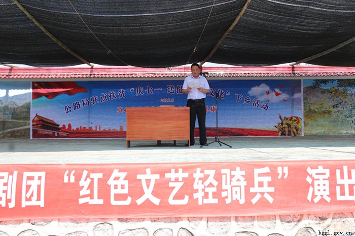 628上午,罗田县公路管理局全体党员干部、二级单位负责人、各支部委员,带领县黄梅戏局团40余名演员来到白庙河镇汤河村开展“庆七一、送健康、送文化”的下乡活动,精彩的表演为驻点村村民送来阵阵欢乐,为脱贫奔小康带来一股积极向上的正能量。